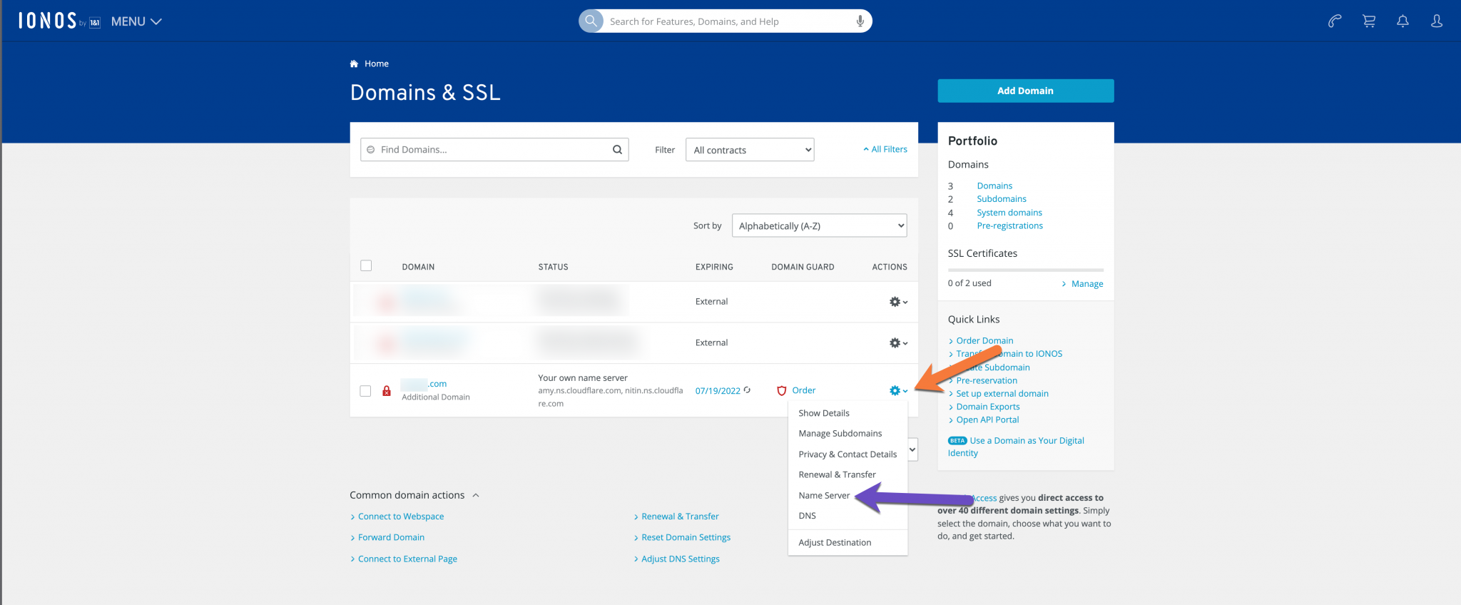 Questa guida fornirà istruzioni chiare e passo dopo passo su come cambiare i tuoi server dei nomi su 1&1, ora noto come Ionos (anche conosciuto come 1and1 o one and one). Seguendo questi semplici passaggi, sarai in grado di aggiornare senza problemi le impostazioni del tuo dominio, garantendo che il tuo sito web tragga vantaggio dalle funzionalità avanzate di Ezoic. Iniziamo a fare queste modifiche per migliorare la funzionalità e le prestazioni del tuo sito.