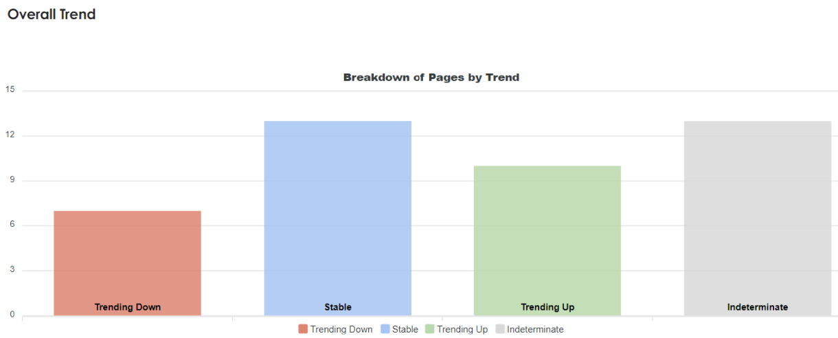 - A bar graph in this section shows the number of pages trending up, down, and remaining stable.