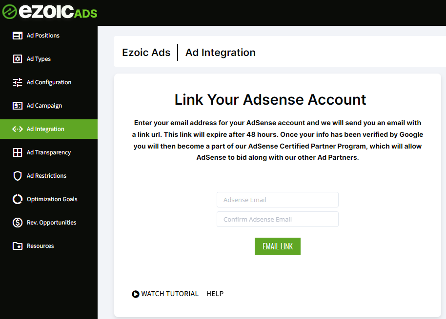 3. In the "Link Your AdSense Account" setion, enter your AdSense email address, enter it again to confirm it, and click "Email Link"