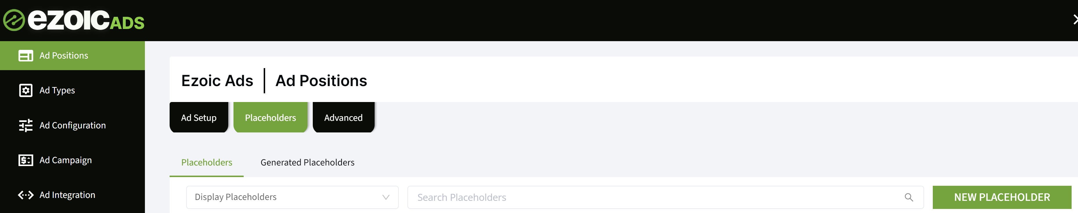 1. From your Ezoic dashboard, navigate to Ezoic Ads > Ad Positions > Placeholders tab.