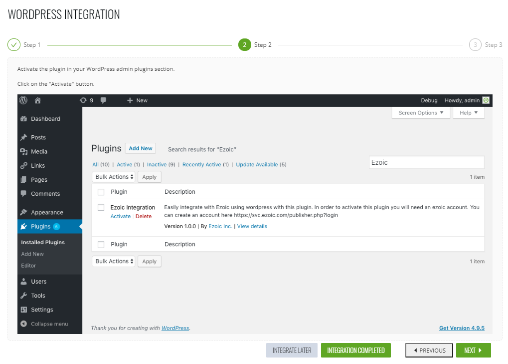 5. Installieren und aktivieren Sie das Ezoic-Plugin innerhalb von WordPress.