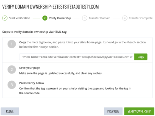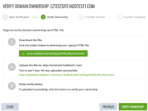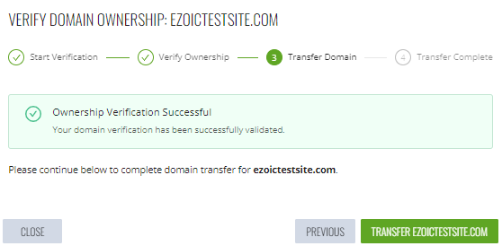 - Once you have verified the site using one of the options above, you can proceed with the domain transfer.
