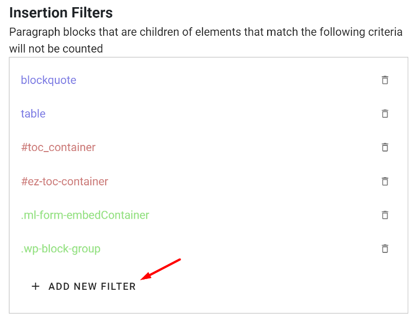 Choose + Add New Filter to insert a new CSS filter for WordPress placeholders.