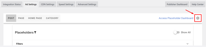 Puede acceder a los filtros CSS para los marcadores de posición de WordPress dentro de la Configuración de Anuncios del plugin de WordPress de Ezoic.