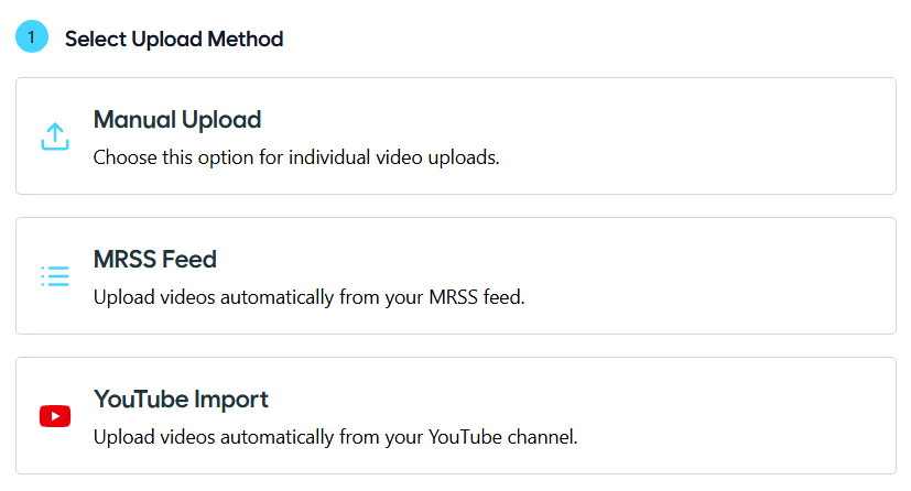 The YouTube import option is recommended for seamless bulk-uploads of content.