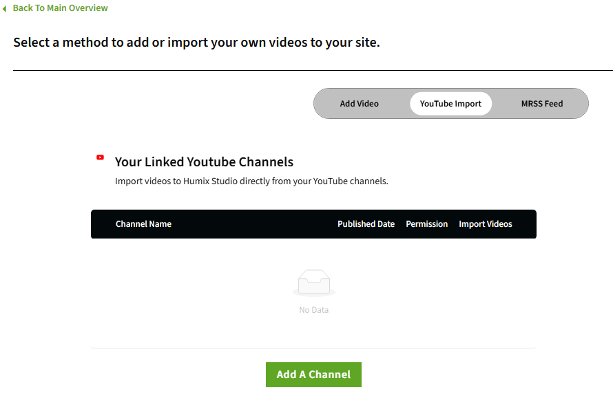 6. Die YouTube-Importseite wird mit Ihrem verknüpften Kanal aktualisiert.