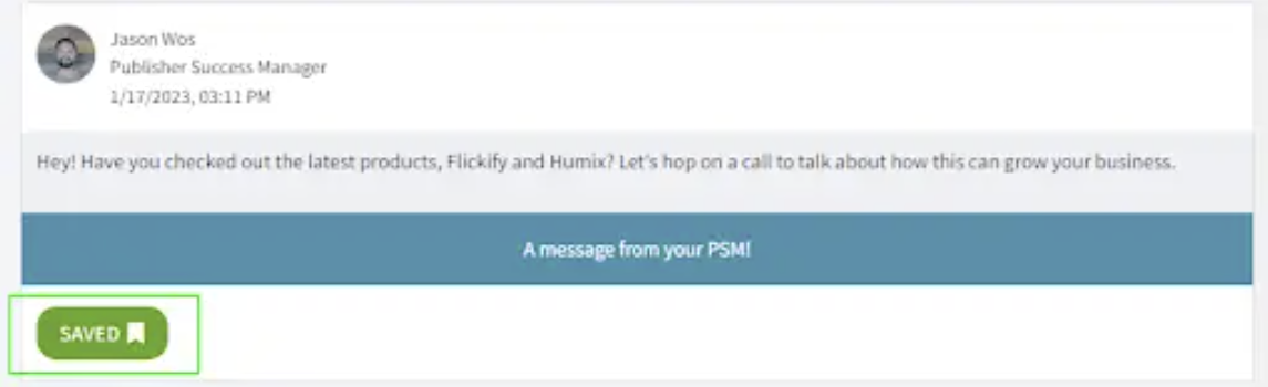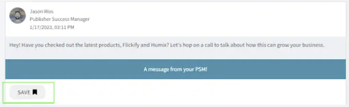 2. Bookmark messages by clicking the “Save” button, which turns solid green once successfully bookmarked. This feature allows for quick reference without digging through all notifications.