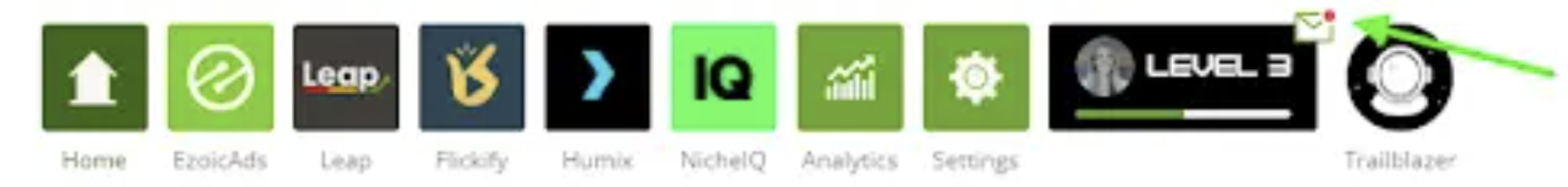 The Levels Newsfeed is designed to keep users informed about the latest updates and happenings at Ezoic. Located in the Levels dashboard, users receive notifications indicated by an envelope icon with a flashing red dot on the Levels Navigation tab.