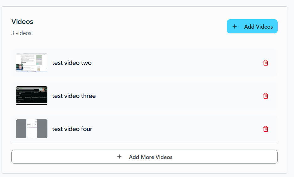 Clicca sulla scheda "Playlist" e seleziona "Nuova Playlist" per iniziare. Dopo aver nominato la tua playlist e scelto un ordine di visualizzazione, puoi aggiungere video. Puoi modificare playlist esistenti in qualsiasi momento, aggiungere o rimuovere video, copiare il codice di incorporamento o eliminare completamente la playlist.
