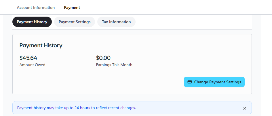 Ensure you have filled out your Tax Information correctly.