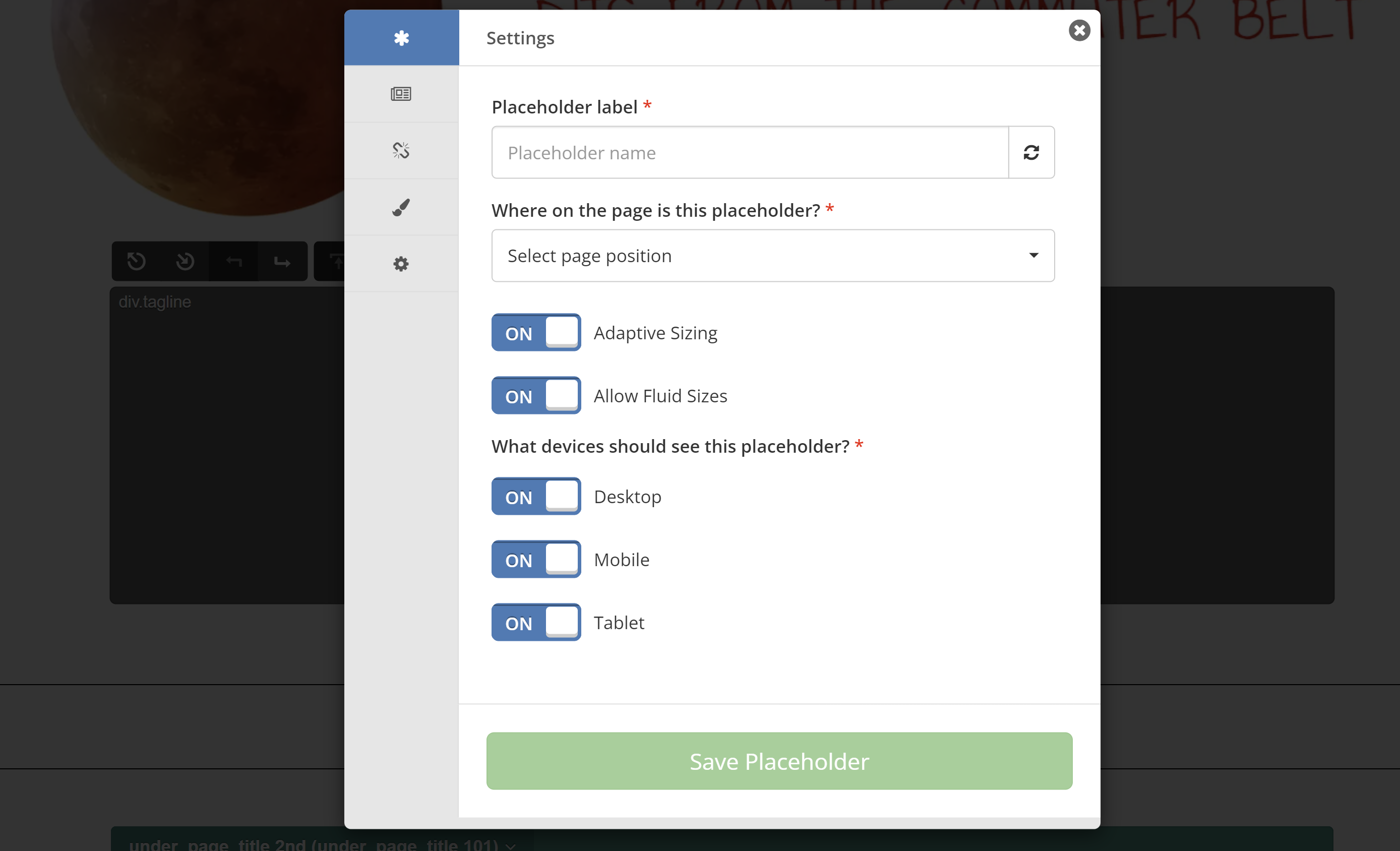 Sobald ein Platzhalter erstellt wurde (oder wenn Sie einen bestehenden Platzhalter bearbeiten), werden Sie aufgefordert, die Einstellungen für den neuen Platzhalter zu konfigurieren: