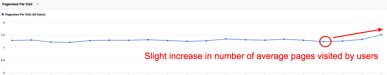 This site also saw a slight increase in pageviews per visit, as now Ezoic was able to better understand the relationship between average pageviews per visit and ad density.