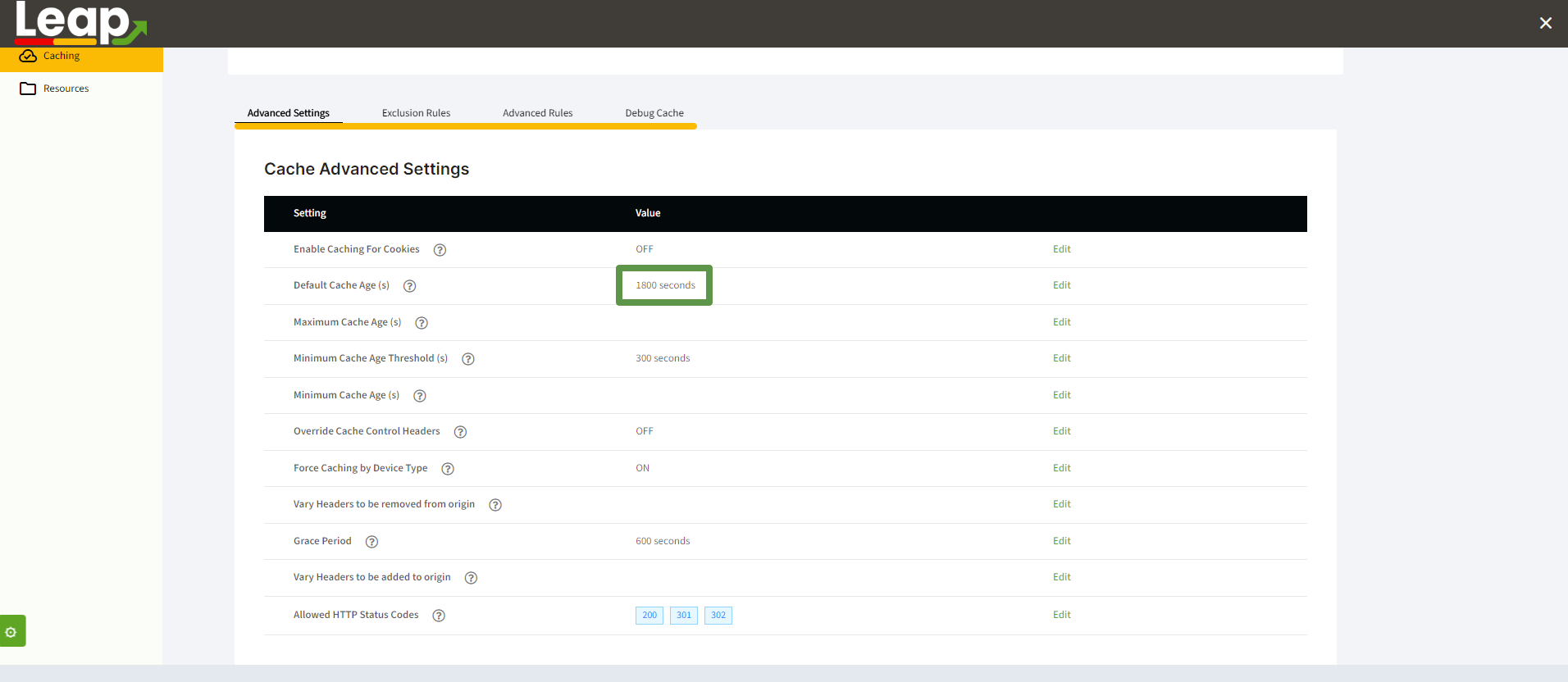 Si vous constatez que vous devez le faire régulièrement, vous devriez réduire l'âge par défaut du cache sous Paramètres > Mise en cache > Règles avancées. L'âge minimum que vous pouvez définir est de 1800 secondes, ce qui équivaut à 30 minutes. Cela signifie que toutes les modifications que vous apportez au contenu de votre site sont reflétées sur le site dans les 30 minutes.